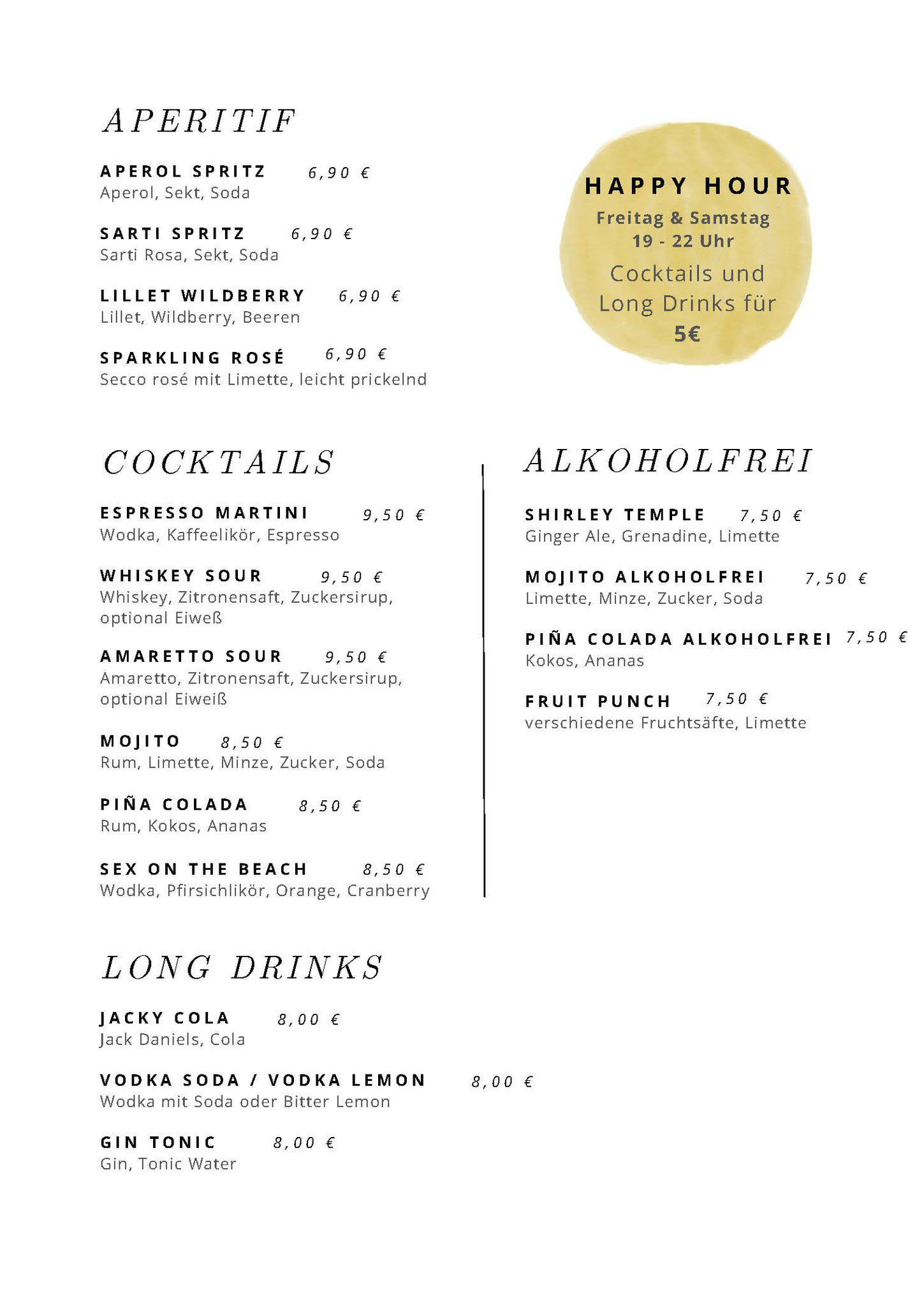 Kommen Sie vorbei und probieren Sie unsere selbst gemachten Cocktails.